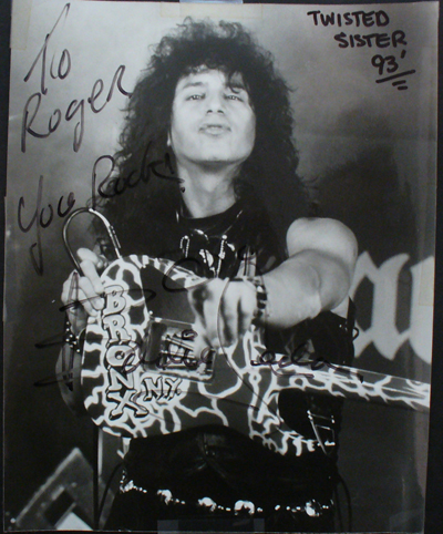 I met Eddie through some friends of Twisted Sister who referred him to me for amp repairs. Eddie was using a 100 watt Marshall 30th Anniversary head that I converted from 6L6 to EL34. He loved it! After that, he came by with various other repairs, and we became friends for the few years I was in N.Y. He invited me down to many a Twisted Sister show which I enjoyed thoroughly. He was kind enough to sign a photo for my wall-of-fame. After I moved to Virginia, I lost touch with him and many others.
